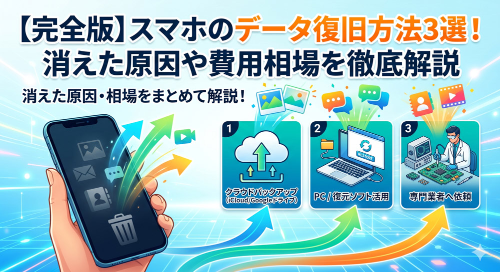 【完全版】スマホのデータ復旧方法3選!消えた原因や費用相場を徹底解説