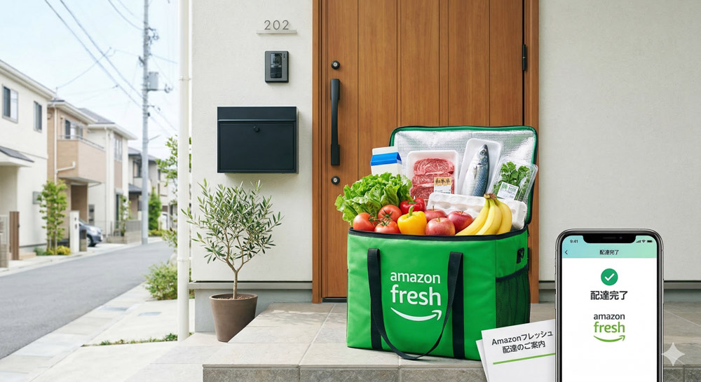 対象エリア(主に都市部)限定ですが、生鮮食品や日用品を最短約2時間で届けてくれるネットスーパー機能「Amazonフレッシュ」が利用可能です。