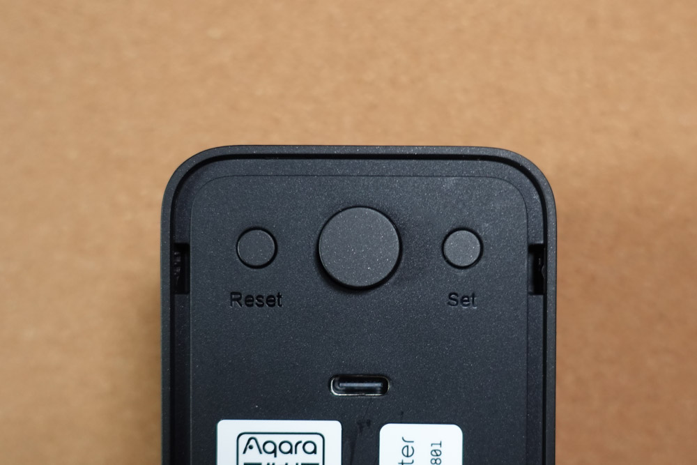 正面のカバーを外すと、リセットボタン(Reset)とペアリングの設定ボタン(set)が現れます。