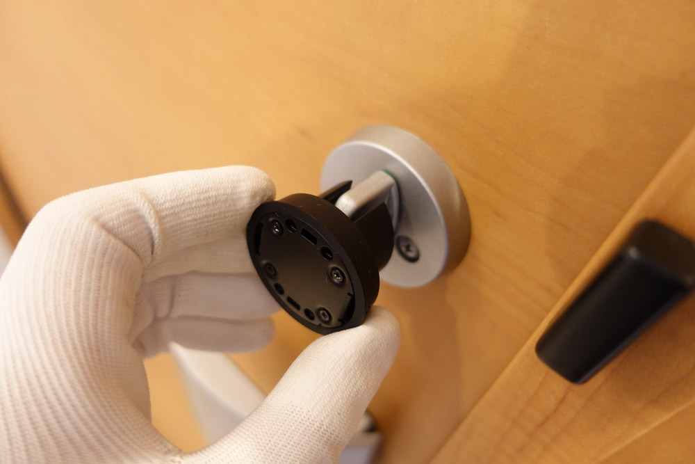 ドアのサムターンにかぶせる形で取り付けます。