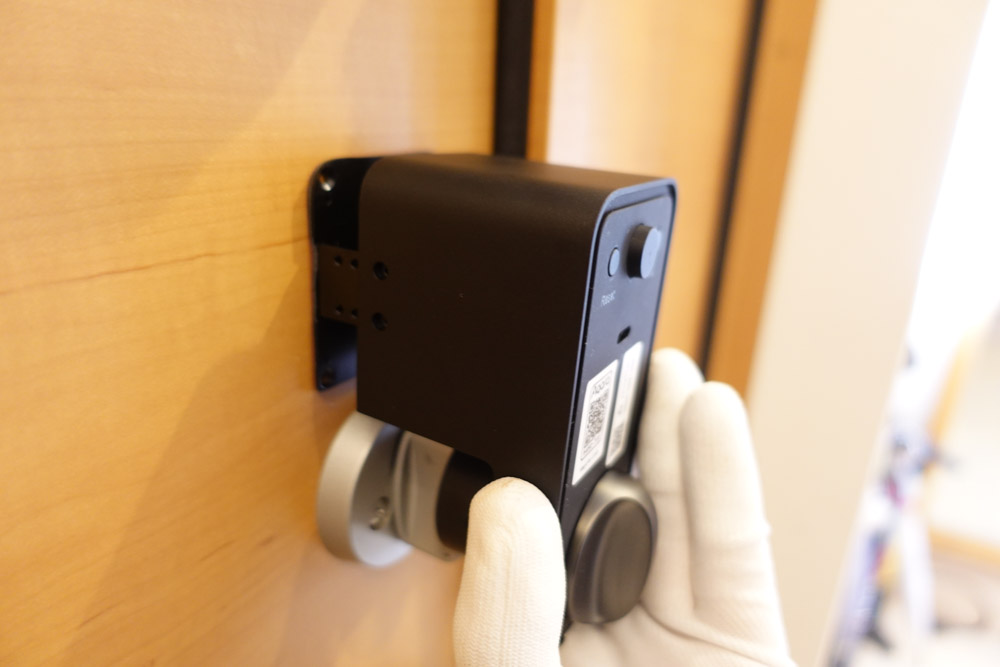 - 本体の取り付け: サムターンと本体の回転軸をぴったり合わせます。付属の3M強力両面テープで貼り付け、48時間以上固定します(※持ち家の場合は付属ネジでの固定も推奨)。
