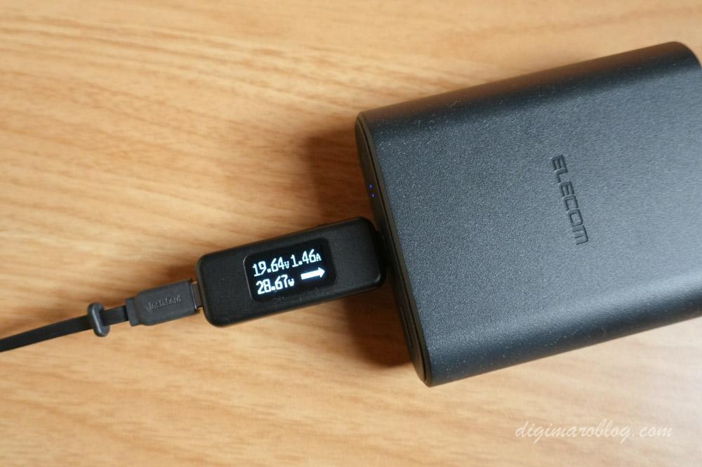 本体への充電は70%程度までは28W付近。これも公式では最大30W充電となってますので問題なしです。