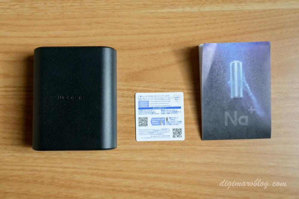 これは購入前からわかっていたことですが、リチウムイオンを使ったモバイルバッテリーに比べると、体積で約1.5倍のビッグサイズ。