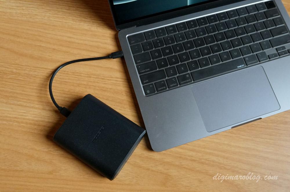 本機は本体とスマホ(デバイス)を同時充電できるパススルー充電に対応していますが、USB-Cポートが一つだけなので、実際には難しいです。あと一つUSB-Cポートがほしかったです。USB-Aポートはあるけど使わないんですよね。