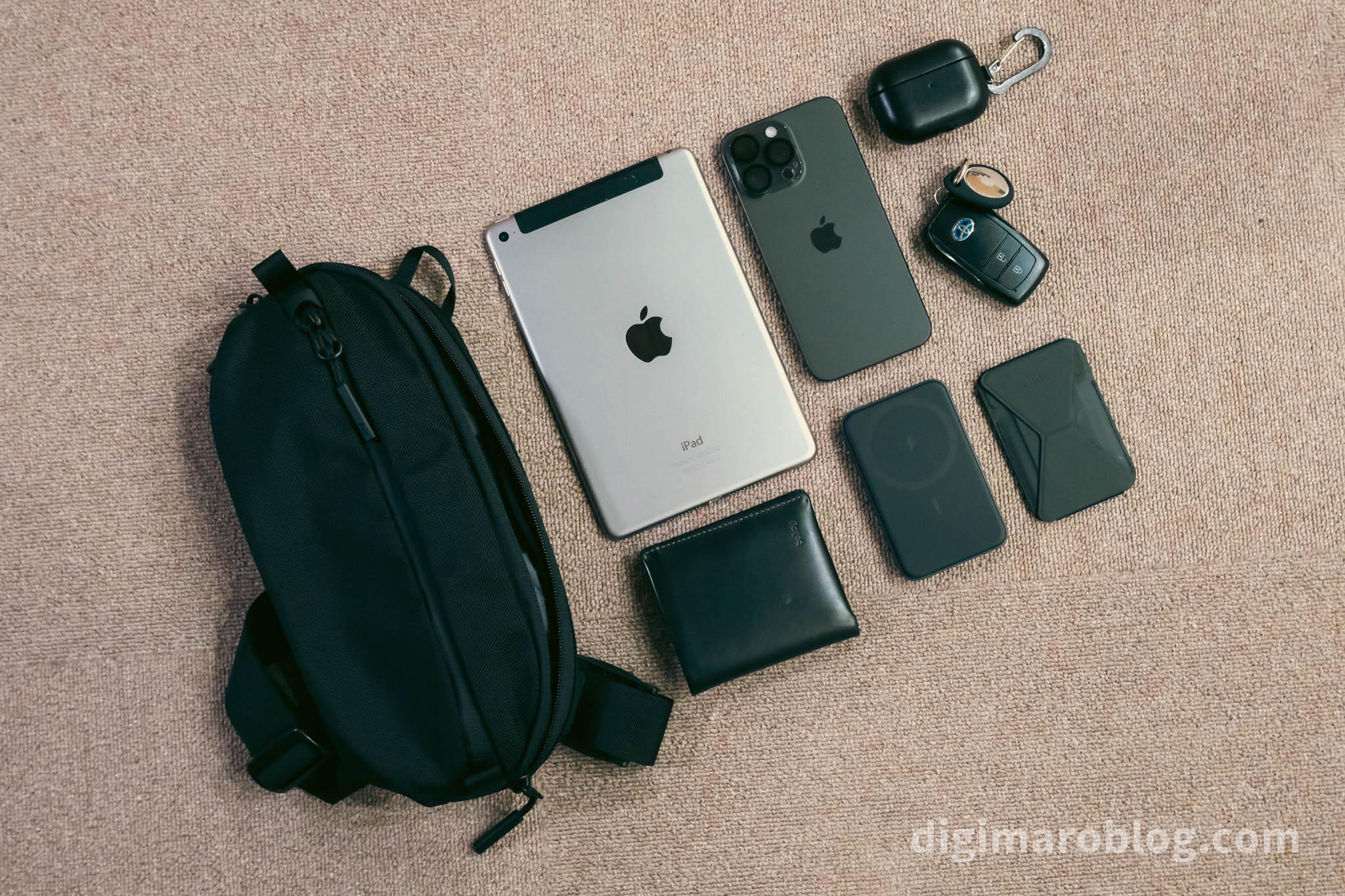 軽量コンパクトなiPad miniだからこそ、MacBookと一緒に持ち出せるし、ウエストポーチやスリングバッグにさっと収納して気軽に持ち出せる小型ガジェットです。