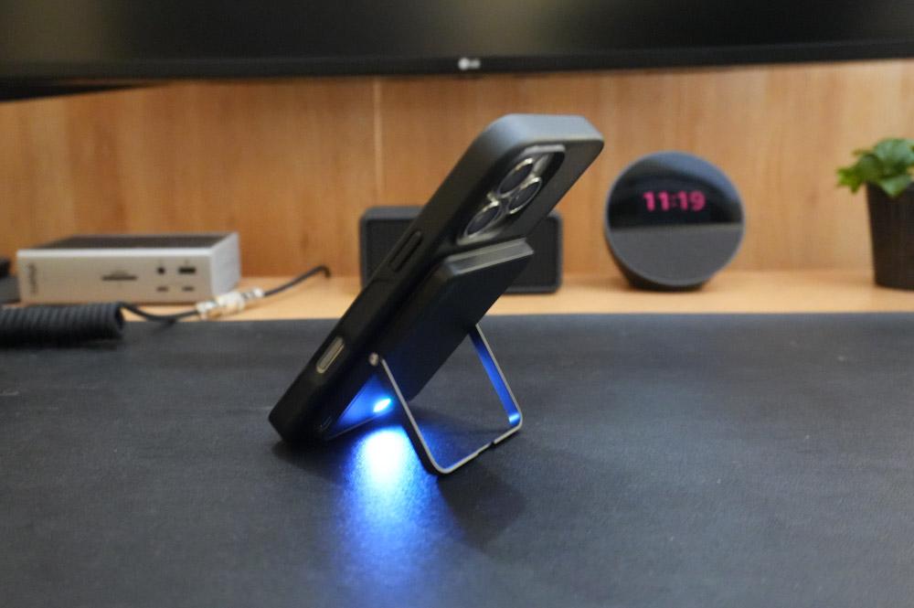 高い耐衝撃性能と、MagSafe対応の超便利な360°回転するゼンマイ式スタンドが特徴です。
