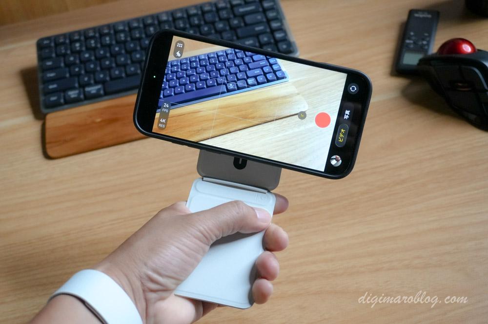 MagSafeタイプは片手持ちでは便利な半面、MagSafe三脚と機能が被ってしまうので、吊り下げた状態で使うしかありません。