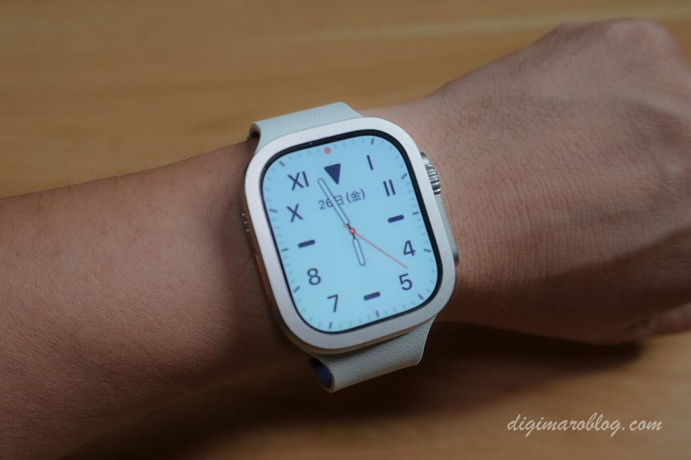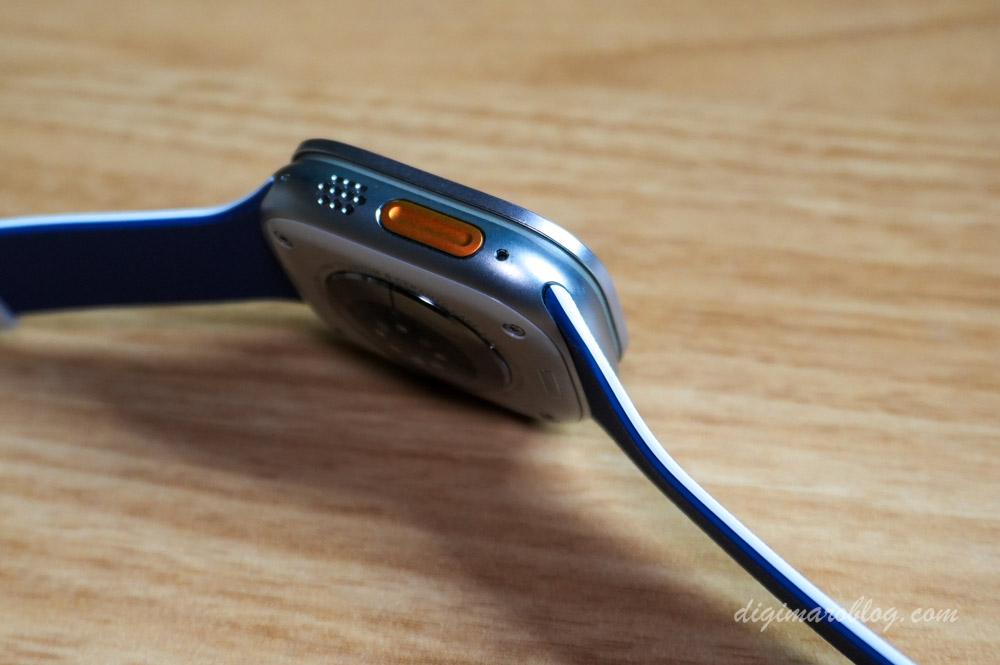 側面は丸みのないデザインなので、純正シリコンバンドに比べ、全体的にシャープなイメージです。