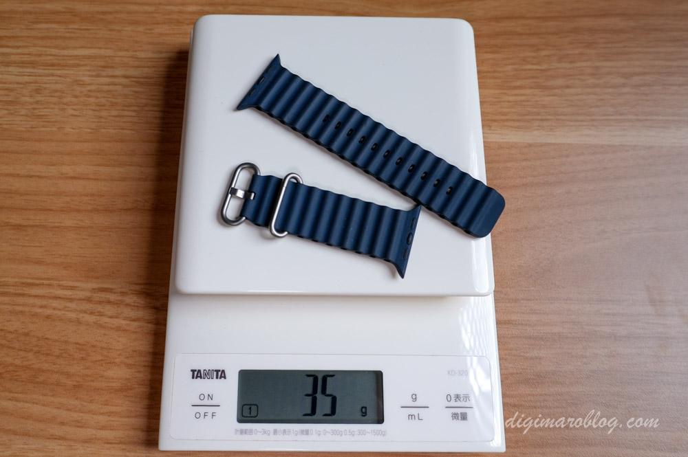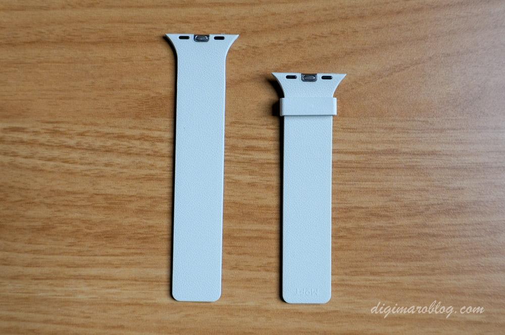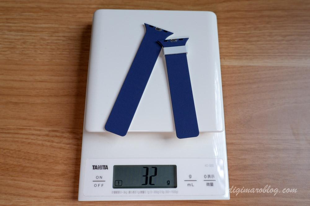 左がMOFTのマグネット式シリコンバンドで32g(実測)。