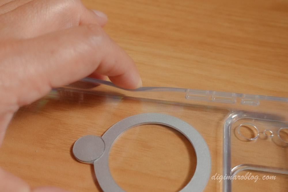側面パーツは、耐衝撃性を考慮した柔らかい樹脂製で、iPhoneの装着も楽ちん。