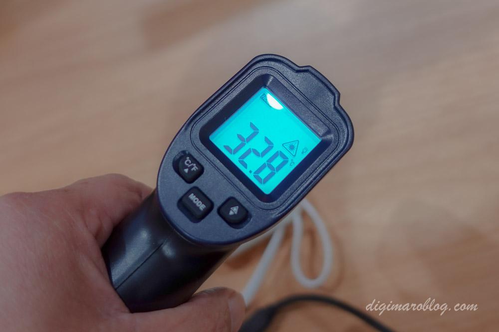 部分的に発熱はありますが、一番熱を帯びているディスプレイ付近でも32.8℃とかなり発熱を抑制していることがわかります。