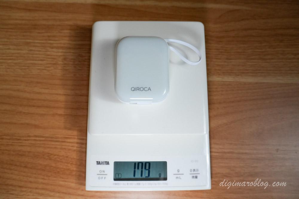 本体の重量は179g。10,000mAhモバイルバッテリーとしては、軽量なモデルです。