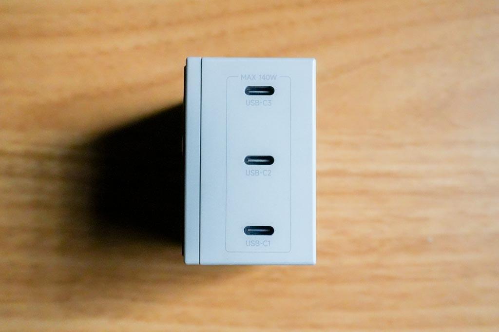 ポートはUSB-Cが3つ。いずれも単ポートなら最大140Wの出力が可能です。