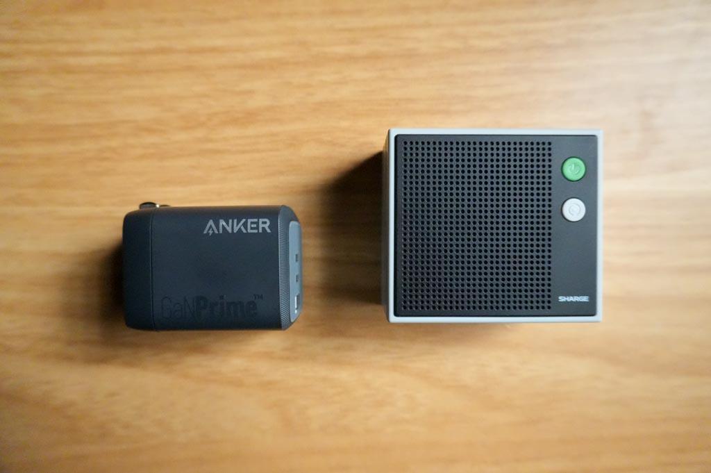 さずがに67Wの充電器と比較するとサイズが大きく感じますね。