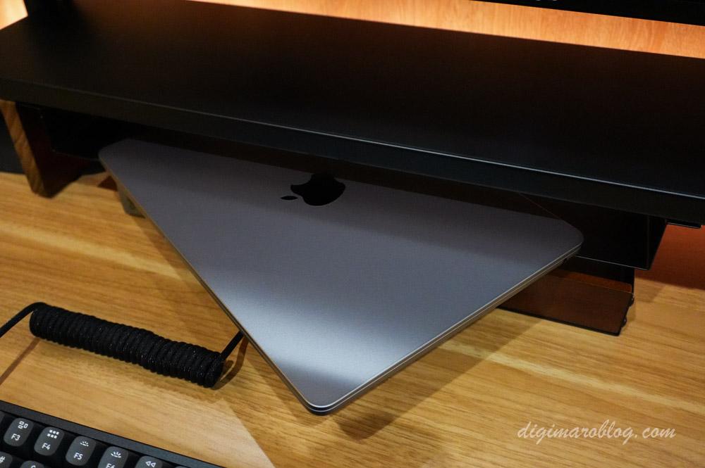 棚には、MacBookのようなノートPCを収納しておくこともできます。
