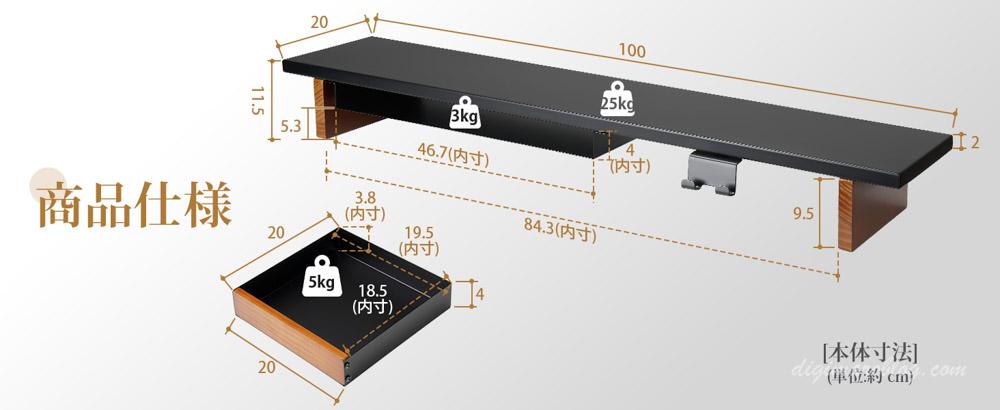 本体サイズ幅 100 × 奥行 20 × 高さ 11.5 cm(外寸)