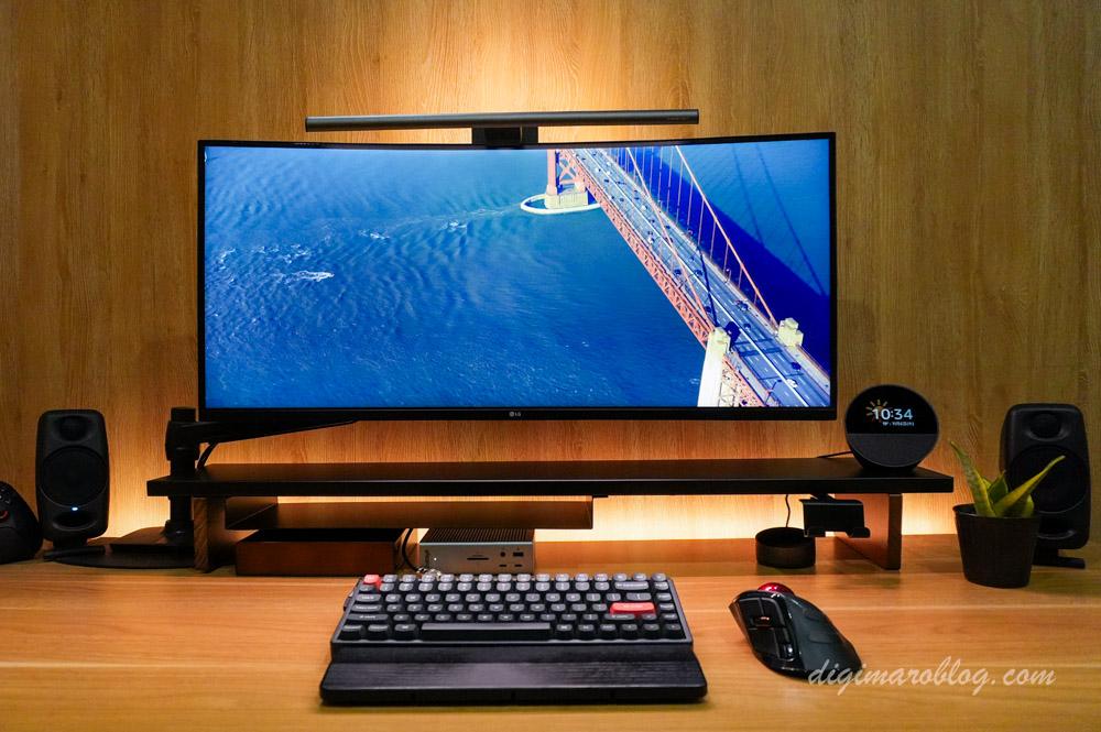デスクシェルの設置は、スッキリとした印象は大きく変わらず、モニター下を有効活用できるのも、大きなメリット。