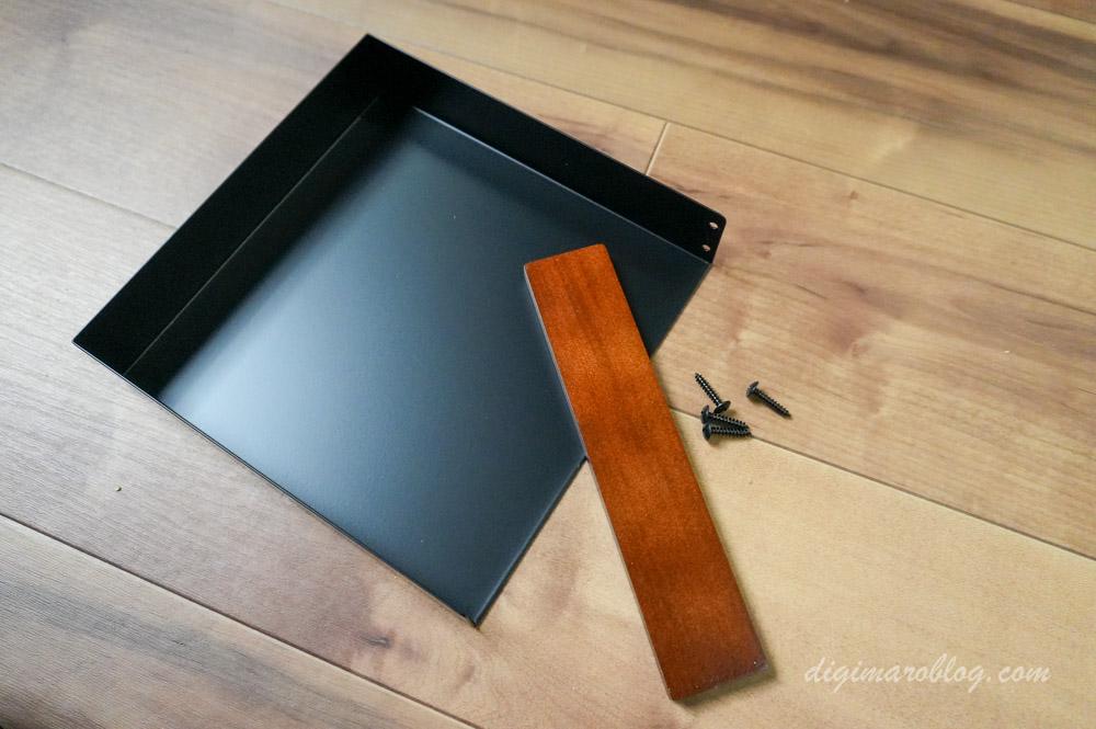 トレイは、裏面がスチール剥き出しで、デスクと擦れてしまうので、カスタムすることにしました。