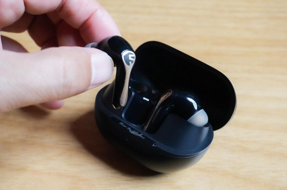 ケース自体が大きく開くので、イヤホンを取り出しやすく、かつ収納しやすい考えられたデザイン。