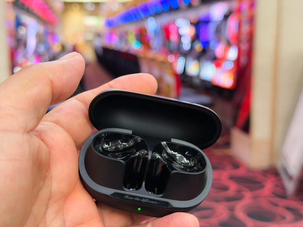 実際の効果を試すために、騒音ではどこにも負けないパチンコ店に持ち込んでみました。