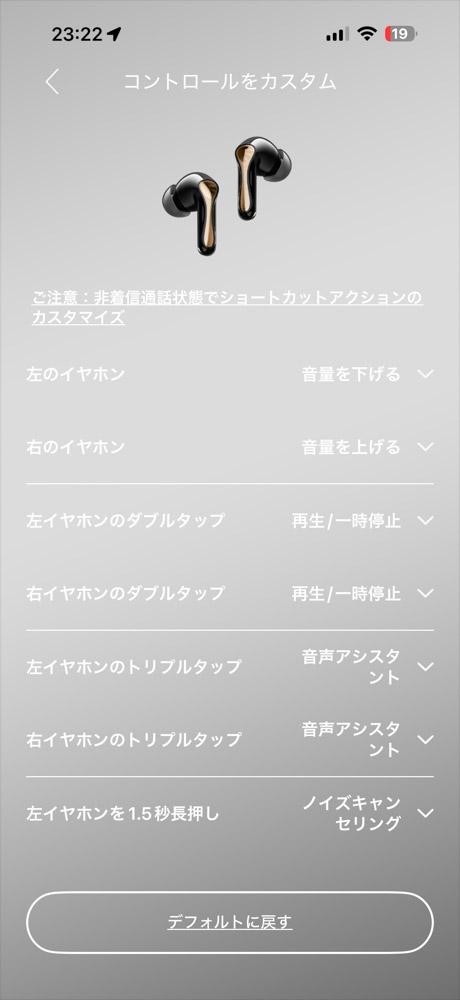 イヤホンの操作、タップ、ダブルタップ、トリプルタップ、長押しをそれぞれ片側ずつ割当操作のカスタマイズができます。