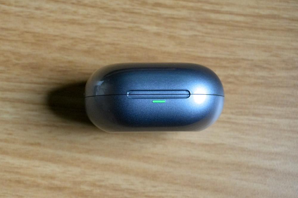 正面は、バッテリー残量やペアリングの状態を示すLEDインジケータが付いています。