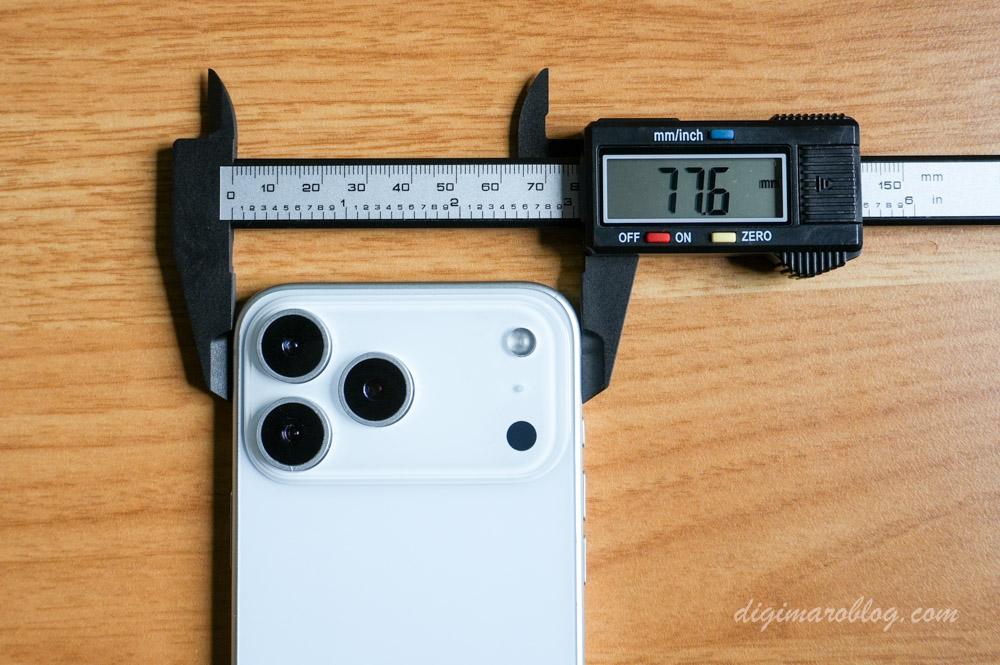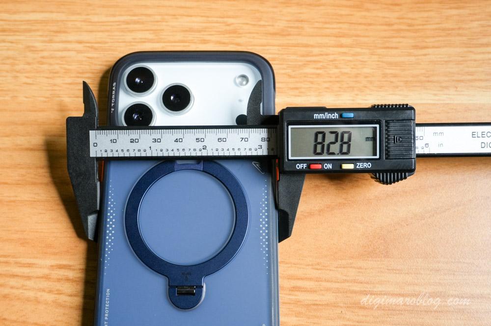 iPhone 17 Pro Maxの横幅77.6mmに対して、ケースは82.8g。