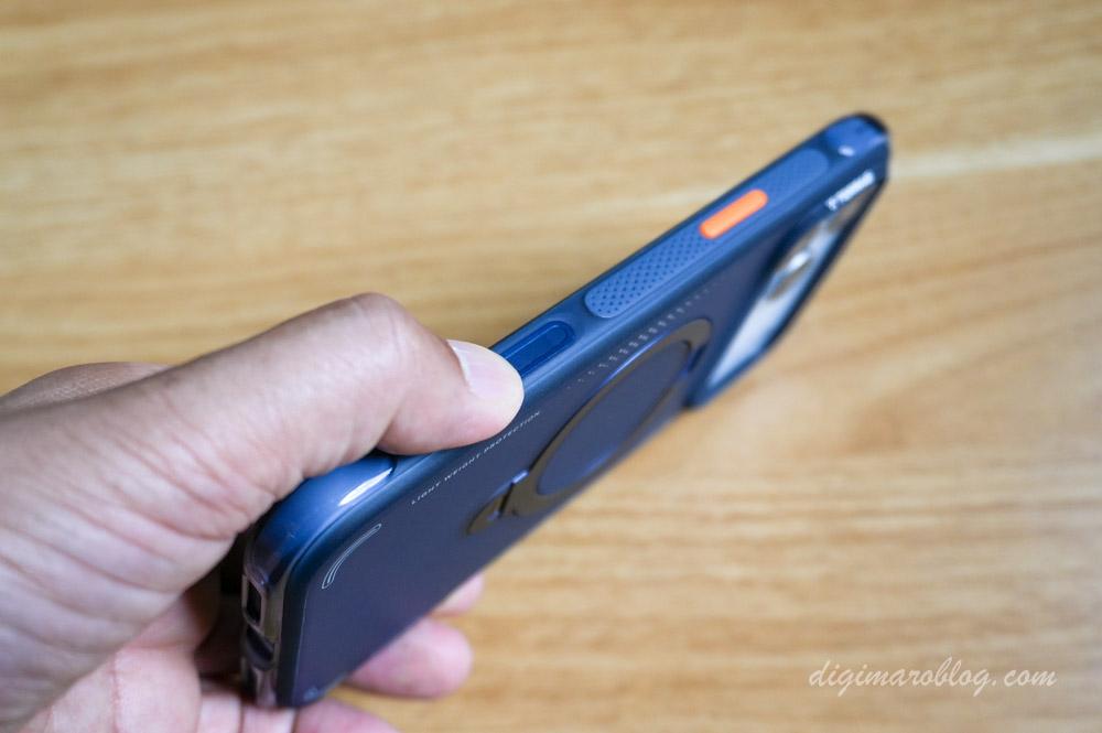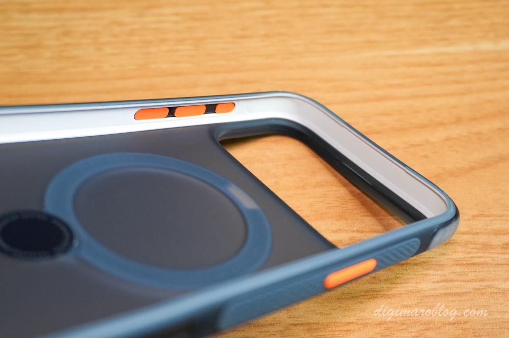 側面の四隅は、ふっくらと盛り上がっているエアバッグ構造で、確かに落下や衝撃に強そう。