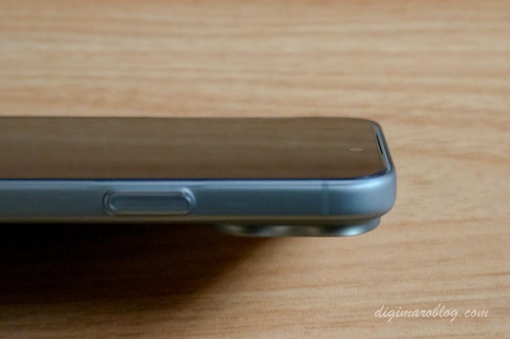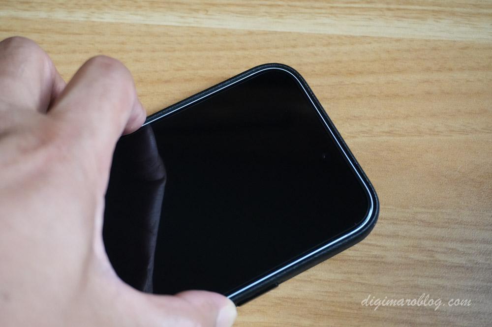 側面の立ち上がりは高さがないので、ガラスフィルムを付けた状態だと、気持ち盛り上がっている程度。