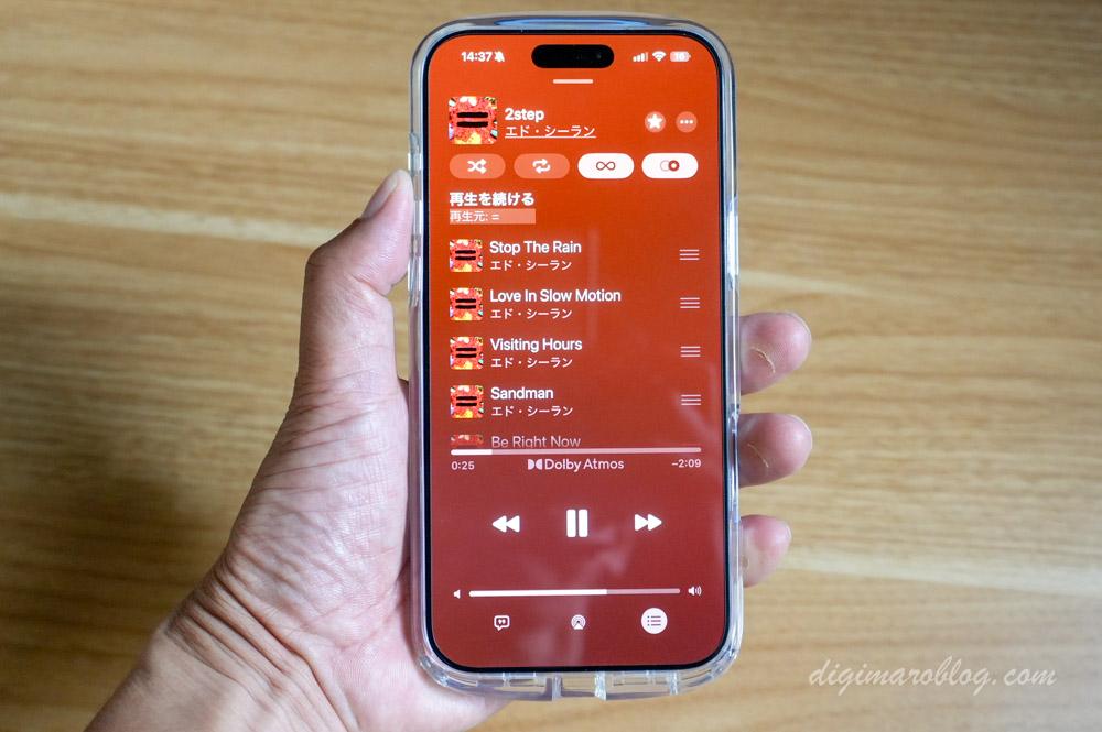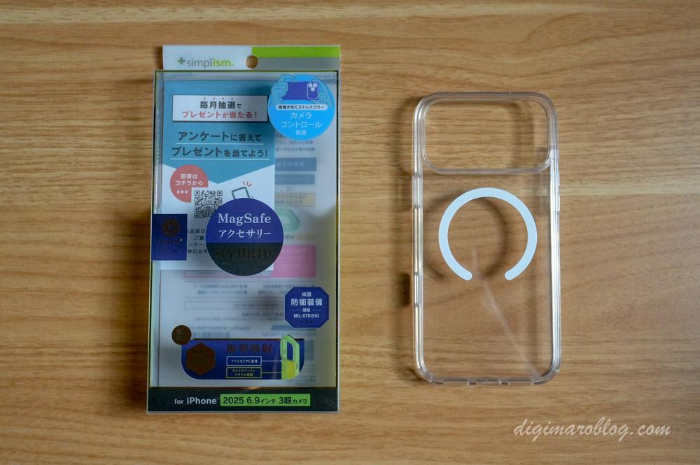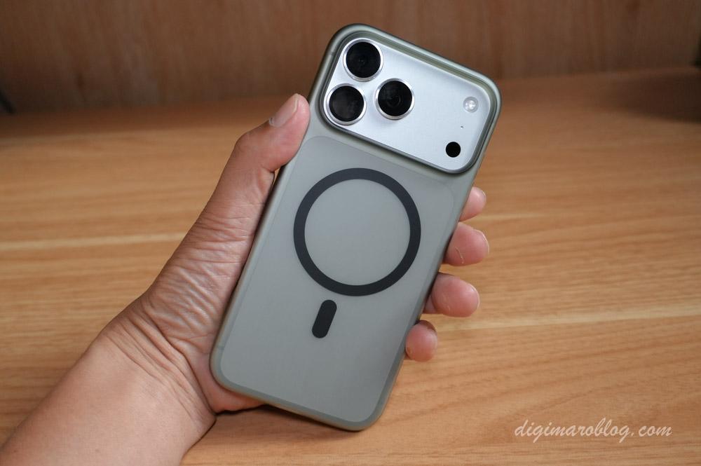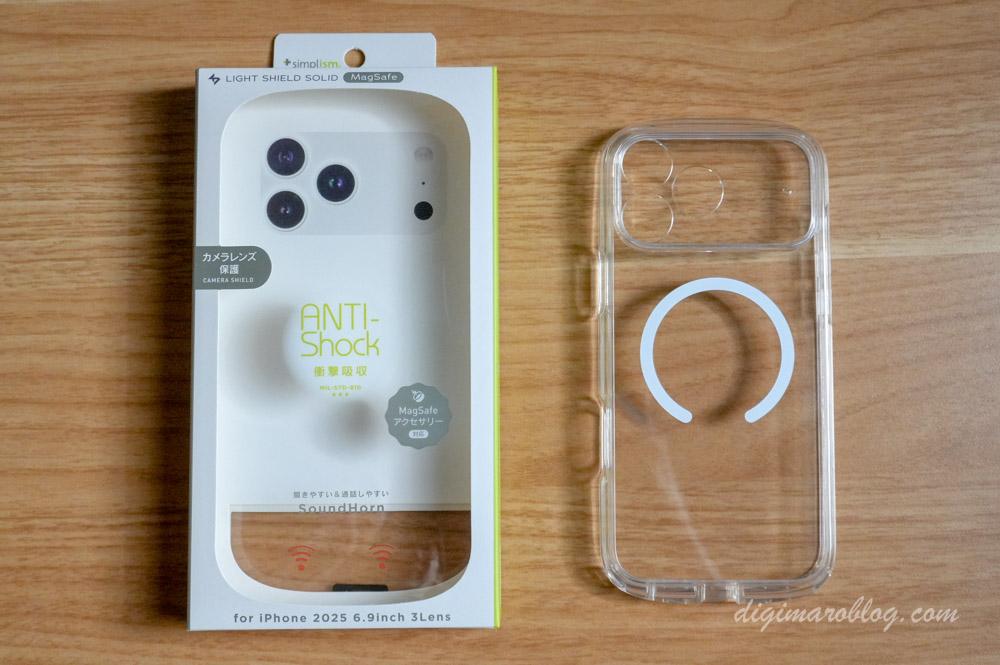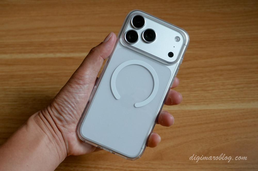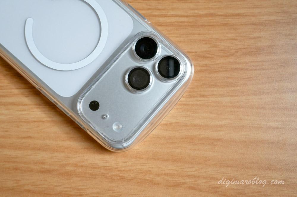 iPhone17 Pro Maxに装着。かなり透明度の高いクリアケースです。