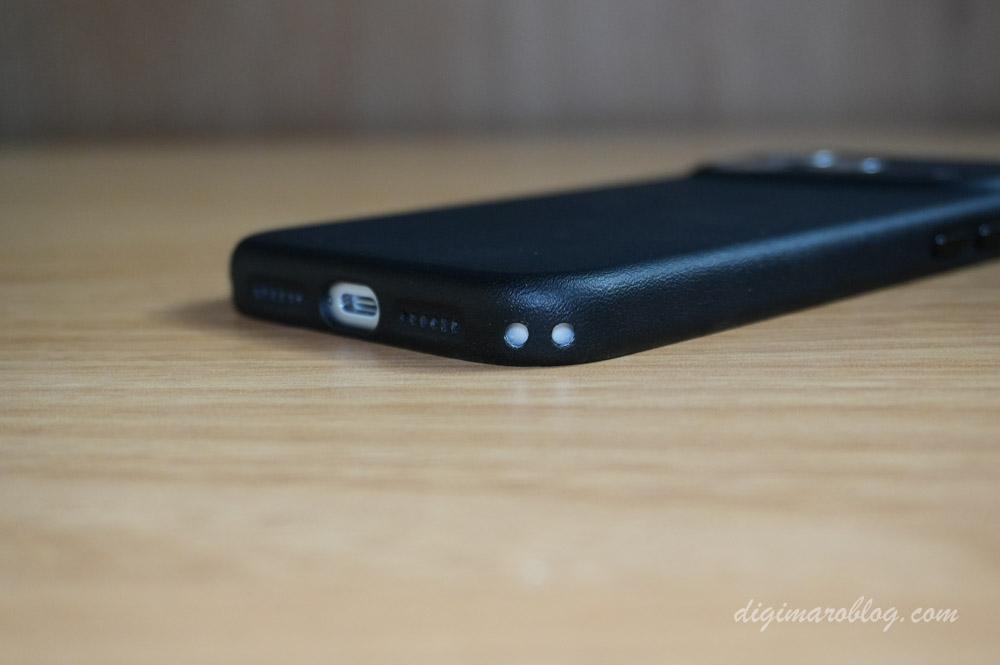 ストラップホールは左右に一つずつあり、Apple純正のストラップも使えます。